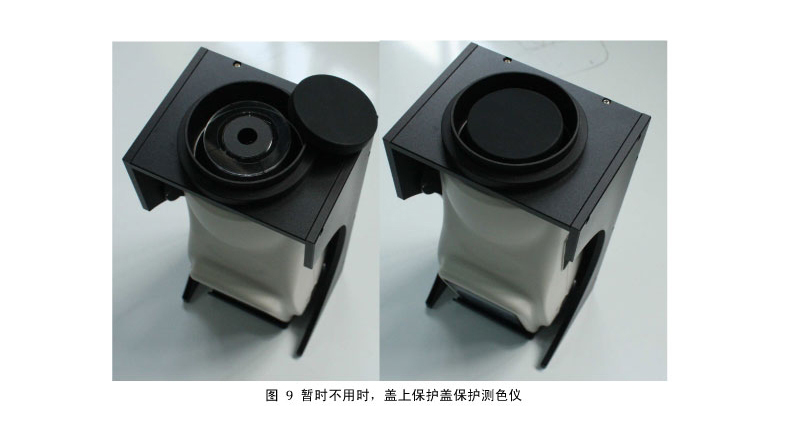 測(cè)色儀裝配在NS多功能測(cè)試組件上面,長期不用時,要及時裝上測(cè)色儀保護蓋,並(bìng)蓋上黑腔蓋闆,保護測(cè)色儀。